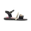Molekinha-Sandalen aus Premium-Verniz mit schwarzgoldenen Metallic-Riemen